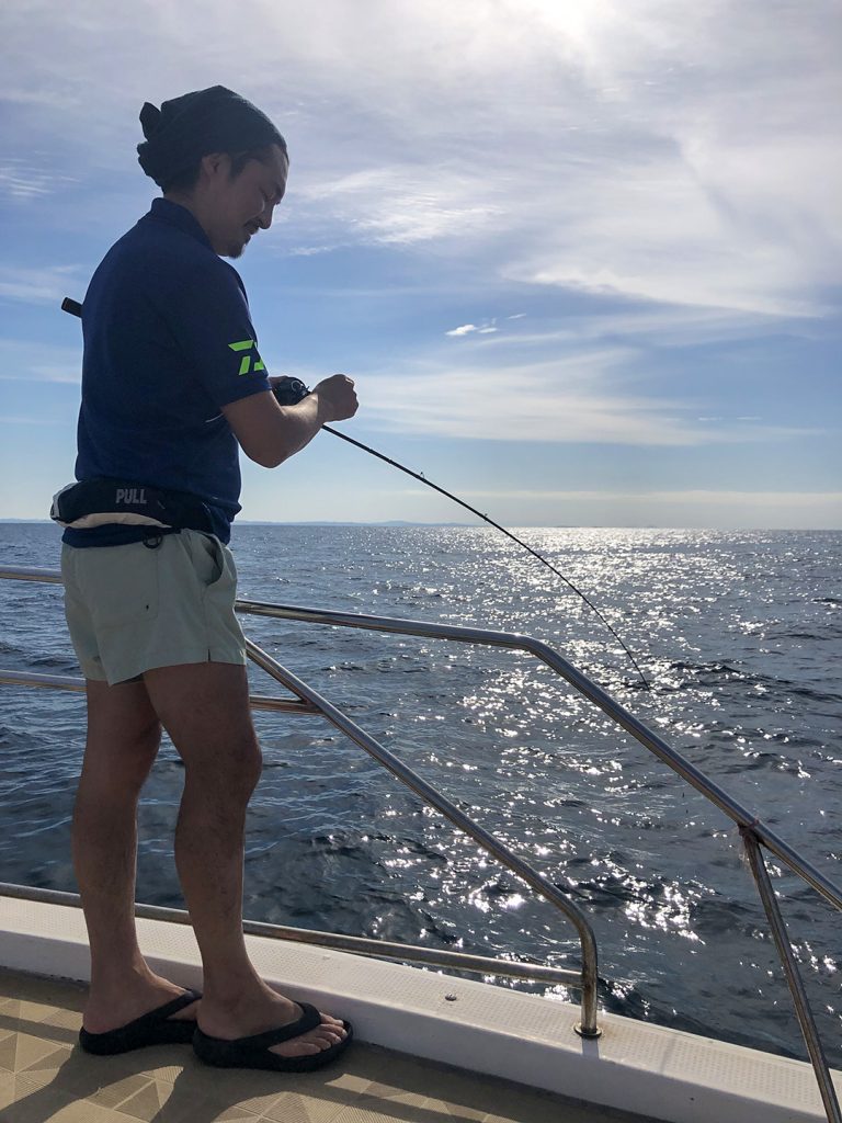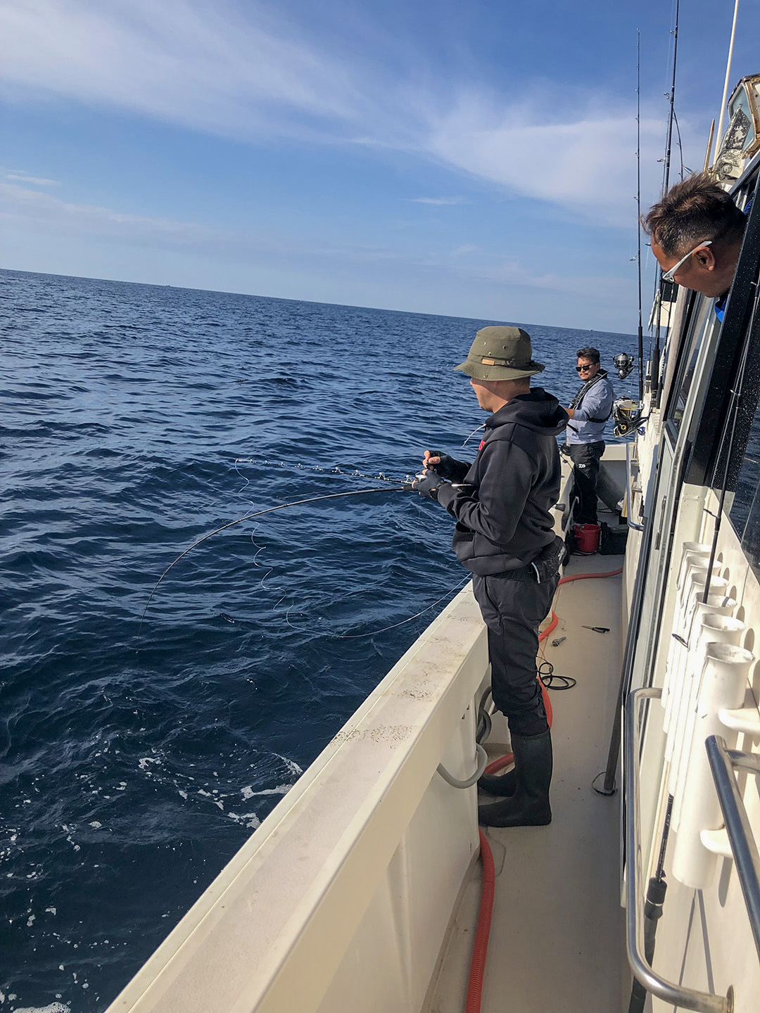 当日は天候も良く波も穏やかで、また壱岐・対馬の中間地点にある絶好の釣りポイントである「七里ヶ曽根」という事で大漁&大きい魚が釣れるかと非常に期待も高まりましたが、風と潮の条件が合わず釣れない時間帯も多く苦戦しました。